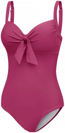 This chic one-piece swimsuit is designed to flatter and support those with a fuller figure, providing both style and functionality. Boasting a blend of elegance and practicality, it features built-in foam cups within a wired inner bra for maximum bust support, alongside adjustable straps and tummy control for a sculpted silhouette. Intricate detailing on the bust enhances its sophistication. Crafted from chlorine-resistant VITA fabric, composed of 78% recycled polyamide and 28% elastane, this swimsuit ensures durability and sustainability. Its full-back design and medium-cut leg offer comfort and coverage, making it suitable for various water activities such as swimming, aqua aerobics, and leisurely beach days.