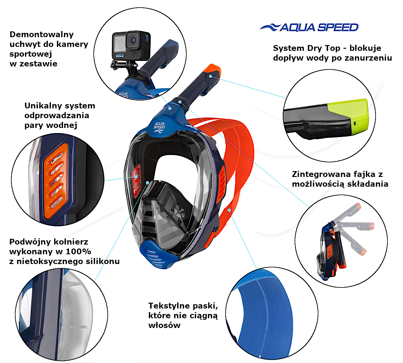 - System Ultra Dry w fajce zapewnia blokadę dopływu wody do wnętrza maski