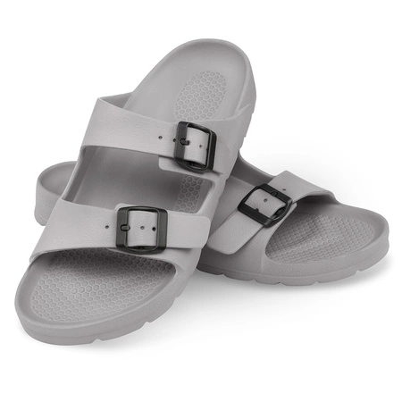 Poznaj klapki LAREDO od AQUA SPEED – idealne połączenie wygody, nowoczesnego designu i praktyczności. Wykonane z lekkiego, elastycznego tworzywa EVA, te klapki doskonale sprawdzą się zarówno na basenie, plaży, jak i podczas codziennego użytkowania. Dzięki dwóm regulowanym paskom z solidnymi klamrami, LAREDO dopasowują się do kształtu stopy, zapewniając stabilność i wygodę noszenia. Anatomiczna wkładka z delikatną strukturą masującą dba o komfort podczas chodzenia, a odpowiednio wyprofilowana podeszwa zwiększa przyczepność do podłoża, nawet w wilgotnych warunkach. LAREDO to minimalistyczna estetyka i funkcjonalność, które razem tworzą niezawodne klapki na każdą okazję.